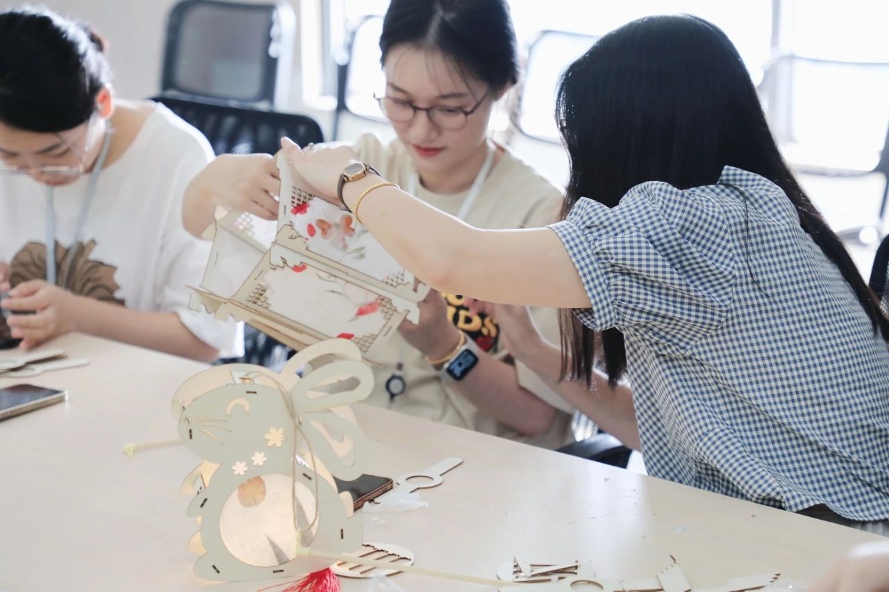 員工們按照教程依次取下木質(zhì)骨架里的雕花側(cè)板,將一面面生動(dòng)可愛的宣紙圖粘貼在燈籠上,最后連接上手提桿和流蘇帶,搭配上色彩繽紛的led燈條完成裝飾。在制作過程中,員工們互相幫助、交流經(jīng)驗(yàn),率先完成制作的員工熱心地與同事們分享自己制作的心得和竅門,活動(dòng)結(jié)束后,大家自豪地展示著自己親手制作的花燈并合影留念。制作花燈活動(dòng)豐富了中秋節(jié)的慶祝方式,增添了節(jié)日的氛圍,增強(qiáng)了團(tuán)隊(duì)的凝聚力和友誼,讓員工們在制作花燈的過程中充分感受中華傳統(tǒng)文化的魅力。
