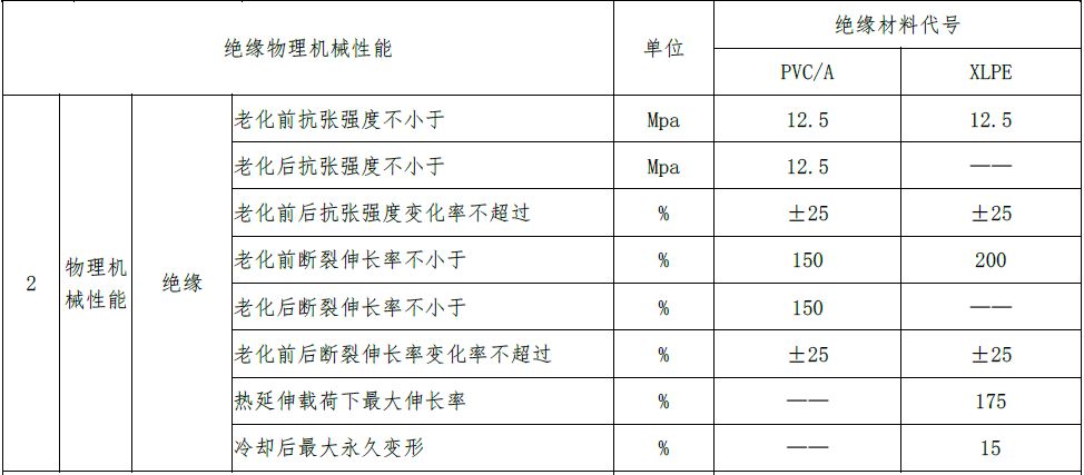 五、技術(shù)參數(shù) 1. 聚氯乙烯絕緣、低煙無鹵絕緣電力電纜導(dǎo)體電阻、標(biāo)稱厚度