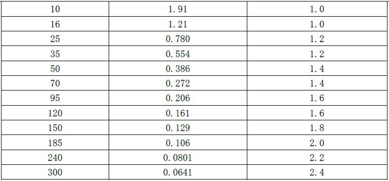 3. 交聯(lián)聚乙烯絕緣電力電纜導(dǎo)體電阻、標(biāo)稱厚度