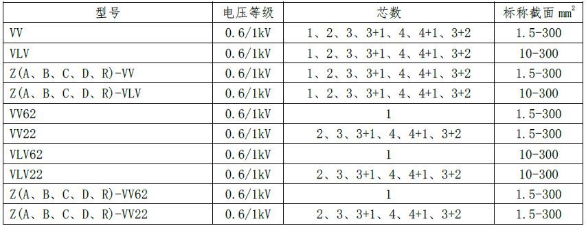 阻燃(A類、B類、C類、D類、R類)鋁芯聚氯乙烯絕緣聚氯乙烯護套電力電纜 |