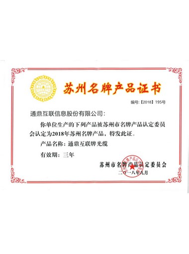 2018年蘇州市名牌產(chǎn)品(光纜)