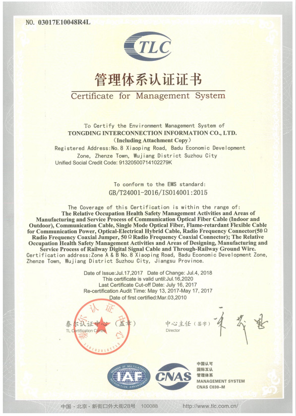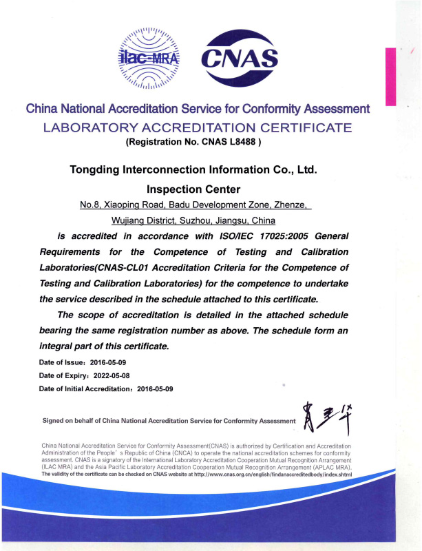 CNAS Certification 2016